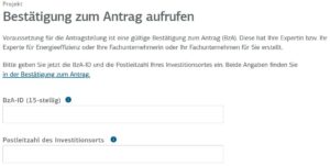 - Sie brauchen für den Antrag eine BzA-ID und ein Angebot Ihres Heizungsbauers, das eine aufschiebende oder auslösende Bedingung enthält.